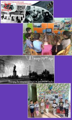 27 января, в день снятия блокады Ленинграда, в подготовительной к школе группе "Радуга" прошло тематическое мероприятие, посвящённое дню снятия блокады Ленинграда.